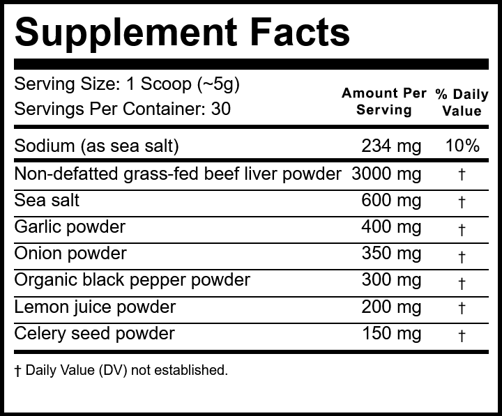 We've taken your beef liver supplement and added just enough seasonings to help mask the *distinct* flavor of liver while still allowing you to season your meal to your liking. Whether it be a Mexican dish, an Italian dish, soup, or even burgers.